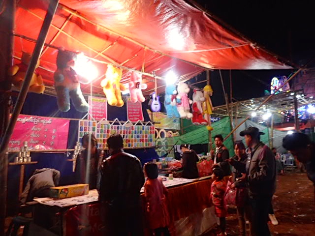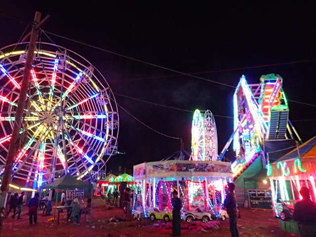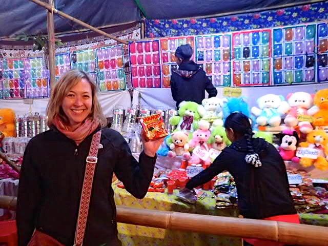Lucky for us, the full moon festival had been pushed back a couple of weeks due to weather. It’s famous for its fire balloon competitions. Hot air fire balloons!!! As we drove up, I tried to convince my travel buddy of how exciting it would be to ride the rides at the festival. Carnival rides aren’t sketchy enough. Let’s ride them in a third world country!! A couple of German backpackers we met in Kalaw talked about a fun, hand-cranked Ferris wheel. What is that?!? And how could we not try it?? My friend told me how she was afraid of heights, and I admitted that the Ferris wheel was the only ride I was afraid of, traumatized as a little kid by people rocking the chair while at the top.