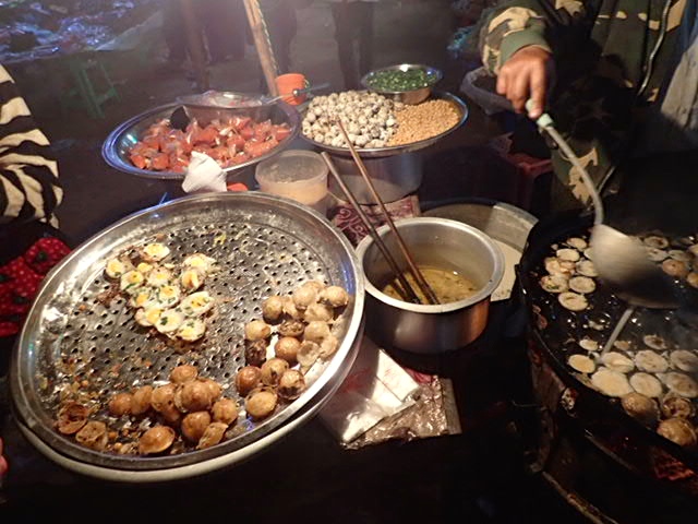 We took our chances eating roasted quail eggs from an adorable lady and her mother. Delicious! Seriously! We even went back for seconds. It was by far the least risky food choice at the fair. Across the path was an assortment of intestines hanging for all to see (and crave?!?).