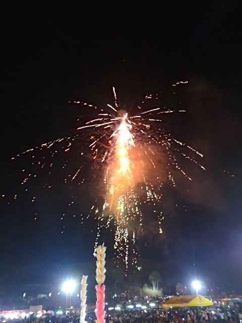 The main attraction of the festival was the hot air balloons. These unmanned hot air balloons are called fire balloons because the basket is loaded with fireworks, set on fire and then released as an offering. A fireworks display sailing over a crowd of people. A few nights before, something went wrong, and the fireworks started going off too early, leaving the crowd below running from the falling flames. As they began setting the fire that night, we discussed a meeting point in case we needed to run. But we only witnessed beautiful fireworks lighting up the night sky, and flames falling on a crowd in the distance.